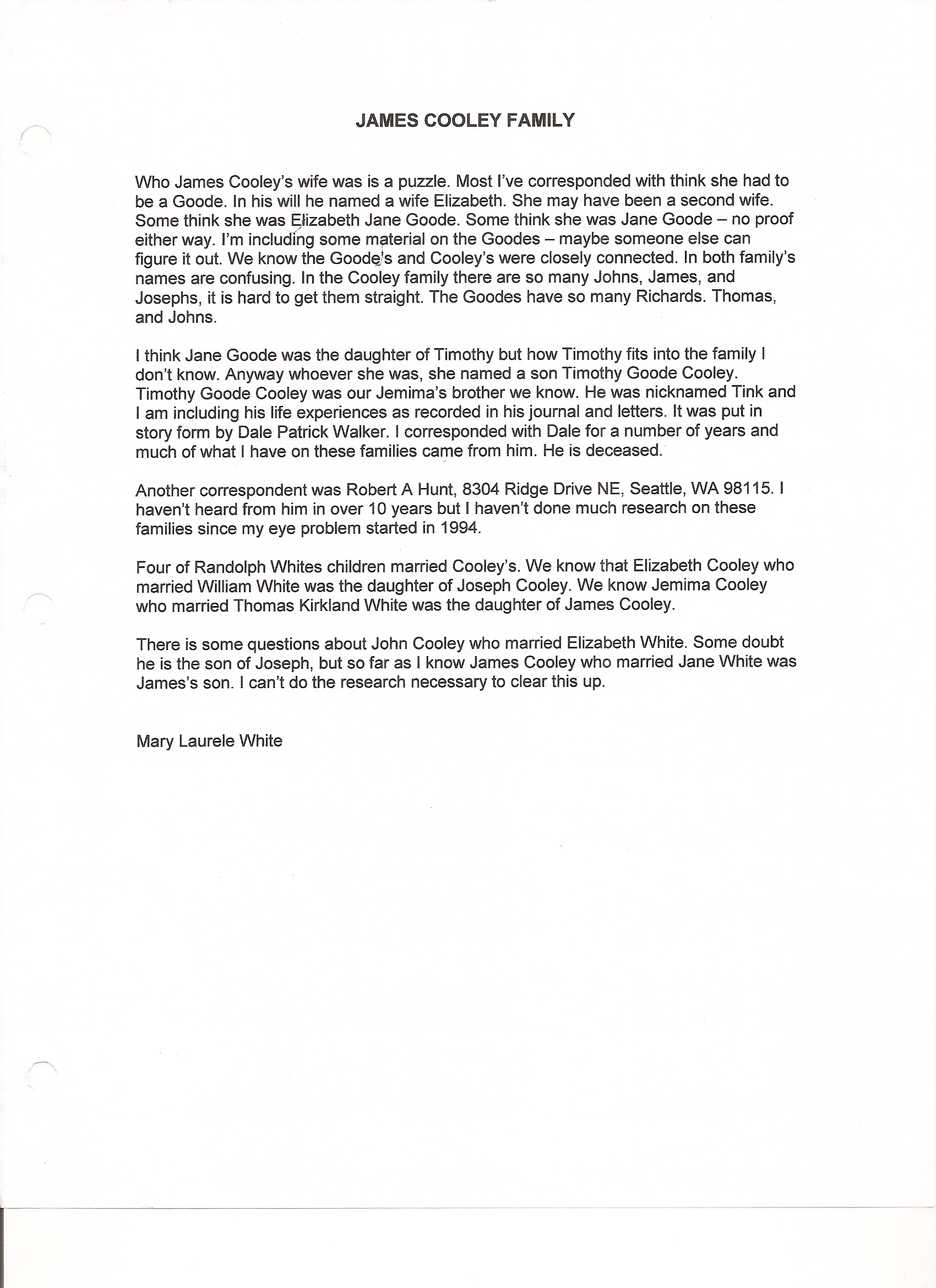 Cooley family. Laurele White was the Macon County, Mo Cooley-White